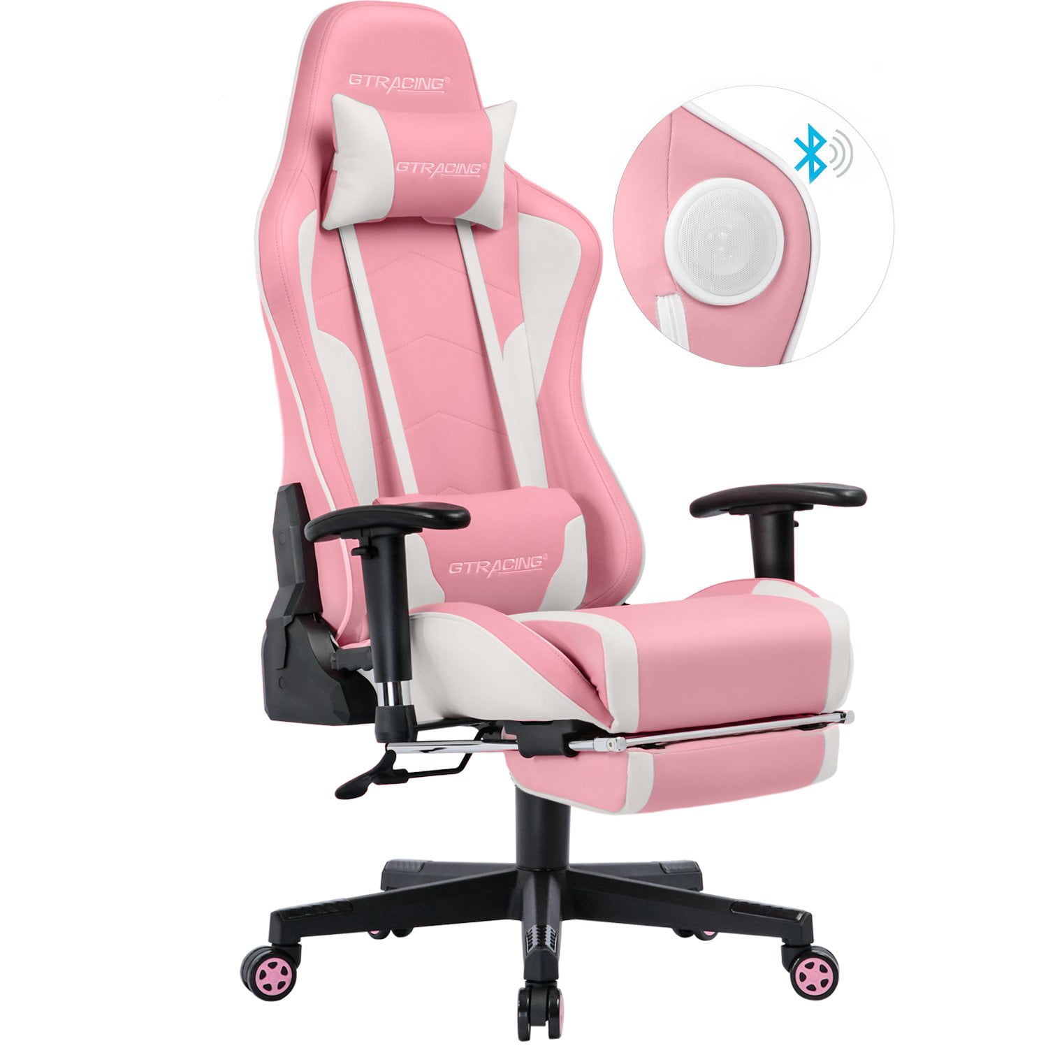 Gtracing Gaming Chair With Speakers Bluetooth And Footrest In Home Leather Office Chair Pink Walmart Com Walmart Com
